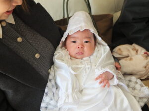 スヤスヤ眠っておられ、お参りが終わると目をぱっちり明けて元気なお顔を見せてくれました😀