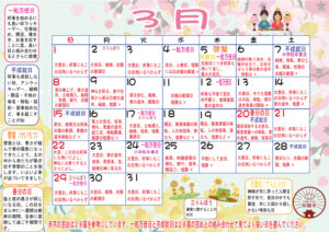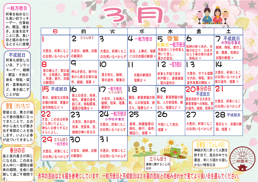 いよいよ春ですね!三月の吉凶カレンダーです。