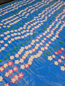 こちらの模造花、紅白饅頭等お土産にご用意しております。
