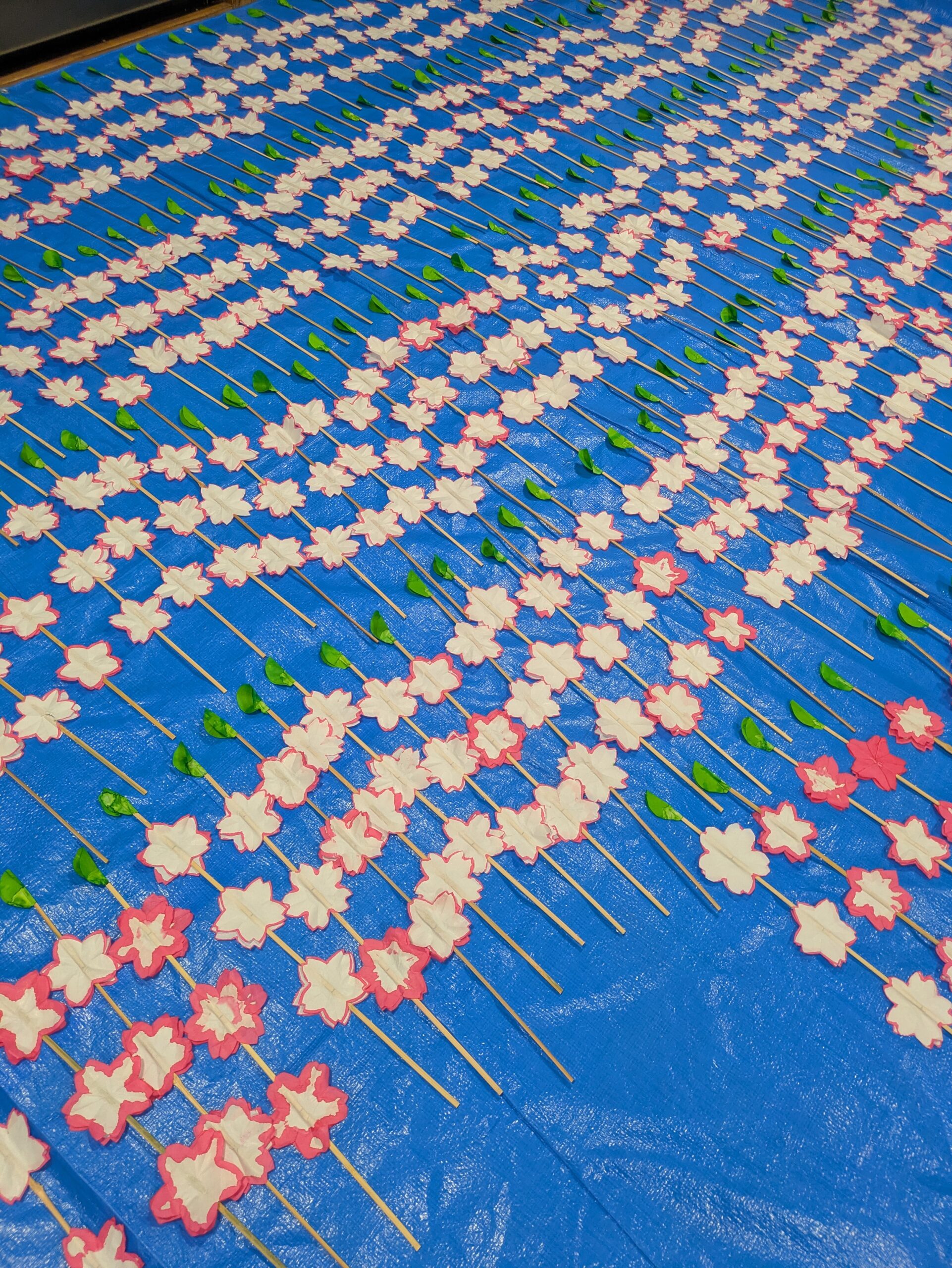 そして、本日総代さん達と一緒に桜の模造花を作りました。