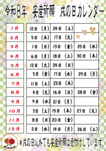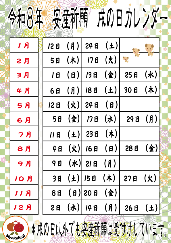 安産祈願は戌の日にどうしても都合がつかない方は都合良い日でかまいません。お仕事があり、午前中や昼間が都合が悪い方も19時くらいまででしたら対応致します。